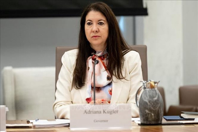Thống đốc Cục Dự trữ Liên bang Mỹ, bà Adriana Kugler dự cuộc họp của Ban thống đốc FED tại Washington, DC., ngày 25/6/2025. (Ảnh: Getty Images/TTXVN)