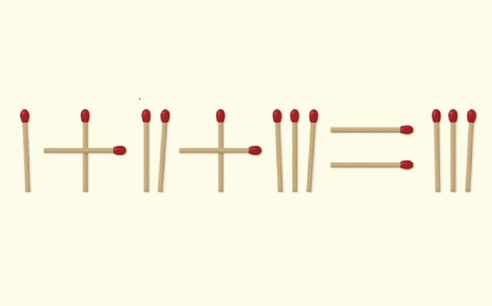 Hãy di chuyển chỉ 1 que diêm duy nhất để phép tính dưới đây trở thành đúng.