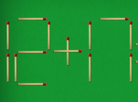 Những que diêm xếp thành phương trình dưới đây. Tuy nhiên, phép tính sai với quy tắc toán học. Người giải cần di chuyển một que diêm ở phần chữ số để biến thành phép tính đúng.