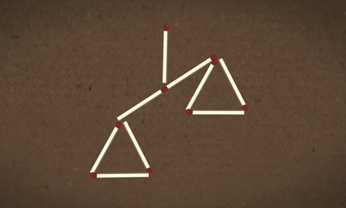 Cái cân được tạo ra từ những que diêm này đang không giữ thăng bằng. Bạn hãy di chuyển năm que diêm để nó quay về thế thăng bằng.