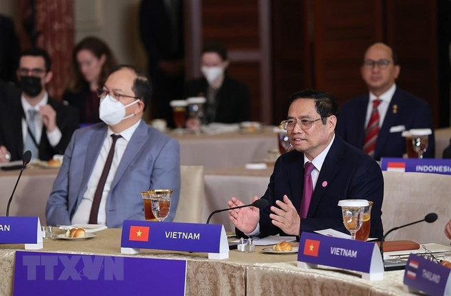 Thủ tướng Phạm Minh Chính cùng các Lãnh đạo ASEAN ăn trưa và làm việc với Phó Tổng thống Hoa Kỳ Kamala Harris. (Ảnh: Dương Giang/TTXVN)