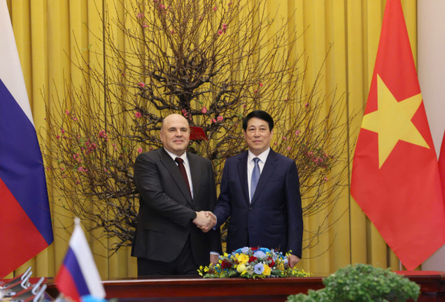 Trong chuyến thăm chính thức Việt Nam từ ngày 14-15/1, Thủ tướng Liên bang Nga Mishustin có cuộc hội kiến Chủ tịch nước Lương Cường sáng 15/1 tại Phủ Chủ tịch.
