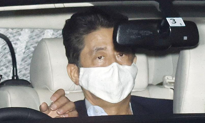 Thủ tướng Shinzo Abe rời một bệnh viện ở Tokyo tối 17/8 sau khi trải qua một cuộc kiểm tra sức khỏe dài hơn 7 tiếng.