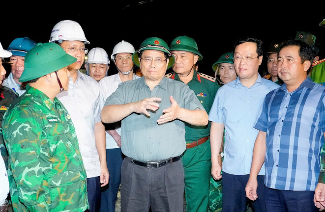 Sau cuộc họp với các địa phương, Thủ tướng Phạm Minh Chính trực tiếp đi kiểm tra, chỉ đạo công tác ứng phó bão số 5 tại một số địa bàn trọng điểm tỉnh Nghệ An.
