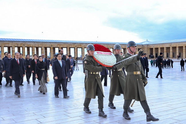 Sáng nay 29/11 (giờ địa phương), Thủ tướng Chính phủ Phạm Minh Chính và Phu nhân Lê Thị Bích Trân đặt vòng hoa vào Lăng viếng Tổng thống Mustafa Kemal Ataturk.