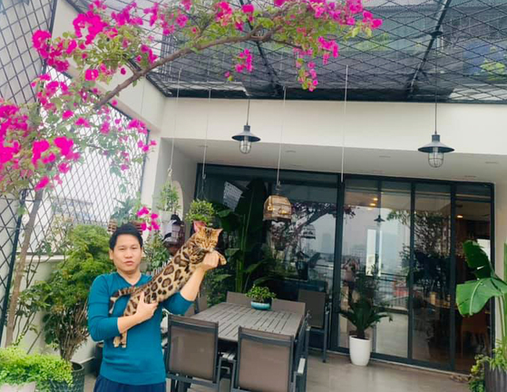 Khu vườn trên sân thượng của gia đình Trọng Tấn trồng nhiều cây cảnh, các loại rau và vật nuôi, lúc rảnh anh dành thời gian huấn luyện chim hót, chơi với lũ mèo.