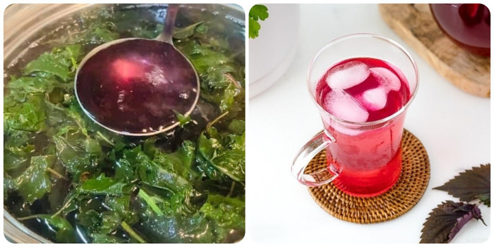 Đun sôi nước tía tô: Rửa sạch lá tía tô, cho vào nồi, thêm lượng nước vừa đủ, đun sôi, vặn nhỏ lửa và đun trong 10-15 phút để lá tía tô tiết ra hết hương vị.