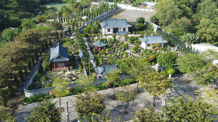 Khu vườn có diện tích hơn 5.000m2, tọa lạc trên tại phường Bửu Long (TP Biên Hòa, Đồng Nai) bên ngoài gắn bảng tên "Vườn bonsai Dona".