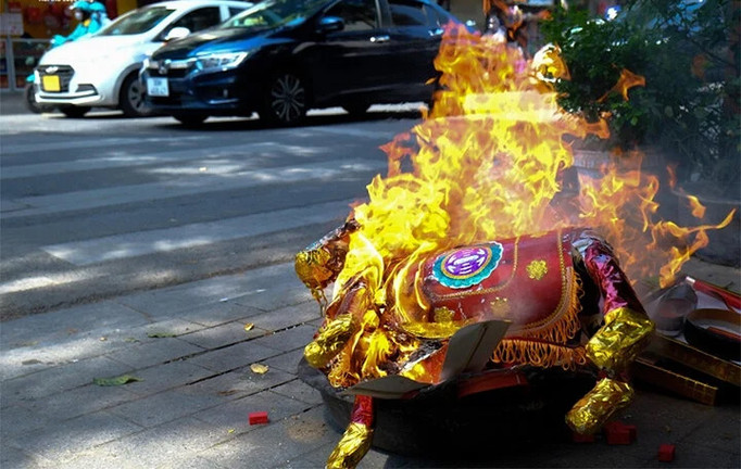 Tôi suýt cháy áo do vàng mã cúng ông Táo đốt trên vỉa hè