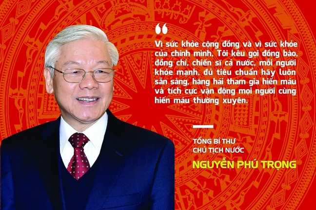 Tổng Bí thư, Chủ tịch nước Nguyễn Phú Trọng gửi Thư tới đồng bào, đồng chí và chiến sĩ cả nước nhân dịp 20 năm ngày Thủ tướng ban hành Quyết định lấy ngày 7/4 hàng năm là Ngày "Toàn dân hiến máu tình nguyện" (7/4/2000 - 7/4/2020).