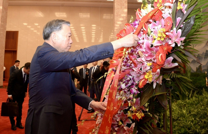 Chiều 19/8, tại Thủ đô Bắc Kinh, Trung Quốc, Tổng Bí thư, Chủ tịch nước Tô Lâm cùng đoàn đại biểu cấp cao nước ta tới thăm Nhà tưởng niệm Mao Trạch Đông.