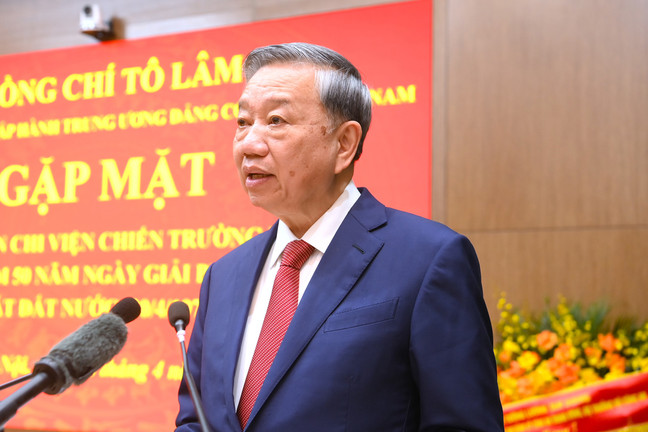 Chiều 8/4, Tổng Bí thư Tô Lâm tới dự và phát biểu tại buổi gặp mặt cán bộ công an chi viện chiến trường miền Nam nhân dịp kỷ niệm 50 năm giải phóng hoàn toàn miền Nam thống nhất đất nước (30/04/1975 - 30/04/2025).