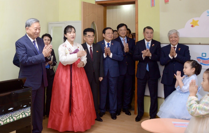 Trong khuôn khổ chuyến thăm cấp nhà nước tới Triều Tiên, Tổng Bí thư Tô Lâm tới thăm Trường mẫu giáo Kiêng Sang và lớp học mang tên Chủ tịch Hồ Chí Minh.