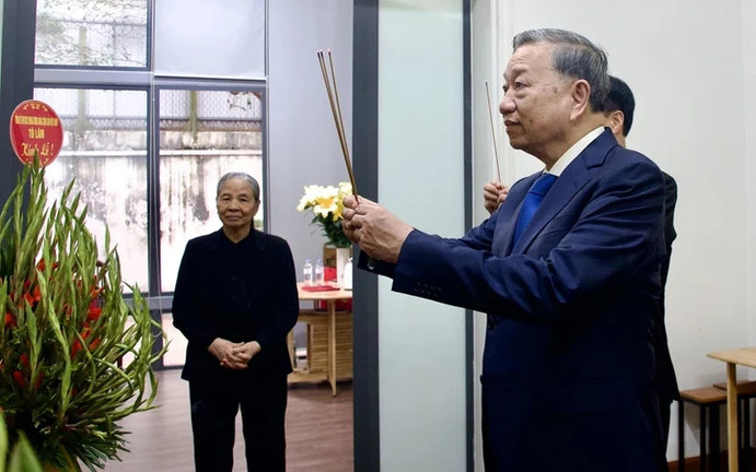 Tổng Bí thư Tô Lâm tới thăm gia đình và thắp hương tưởng nhớ cố Tổng Bí thư Nguyễn Phú Trọng nhân dịp đầu xuân năm mới 2025, chuẩn bị đón Tết cổ truyền Ất Tỵ.