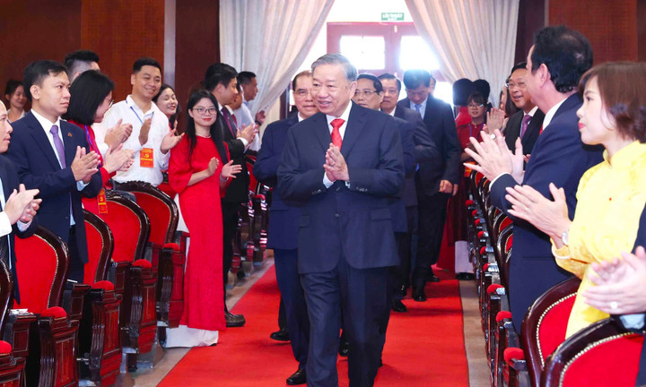 Tổng Bí thư Tô Lâm, các lãnh đạo, nguyên lãnh đạo Đảng, Nhà nước và các đại biểu dự Đại hội.