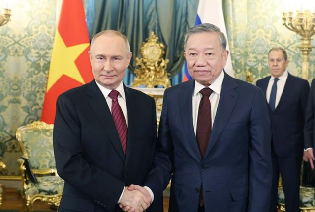 Trưa 10/5, giờ địa phương, tại Điện Kremlin ở thủ đô Moskva, Tổng Bí thư Tô Lâm hội đàm hẹp với Tổng thống Nga Vladimir Putin.