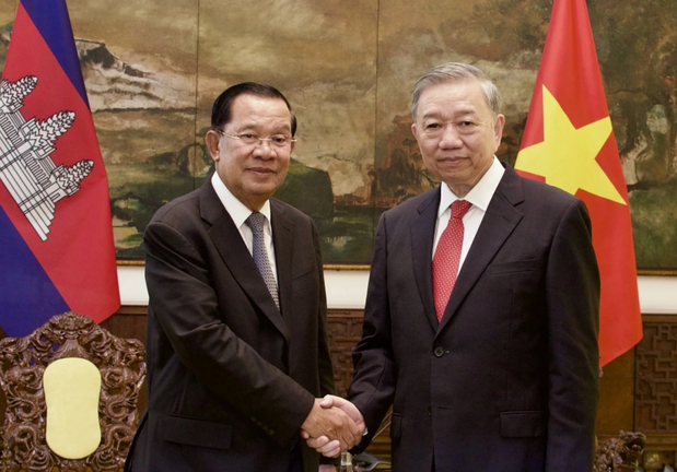 Tổng Bí thư Tô Lâm và Chủ tịch Đảng Nhân dân Campuchia, Chủ tịch Thượng viện Vương quốc Campuchia Samdech Techo Hun Sen.