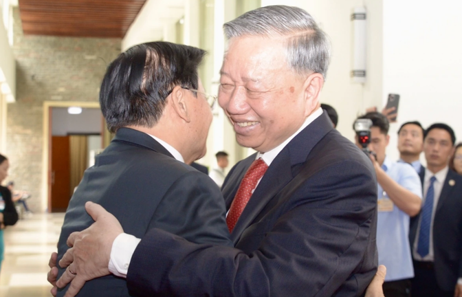 Tổng Bí thư Tô Lâm hội kiến Tổng Bí thư, Chủ tịch nước Lào Thongloun Sisoulith nhân dịp sang nước ta dự lễ kỉ niệm 50 năm Giải phóng miền Nam, Thống nhất đất nước.