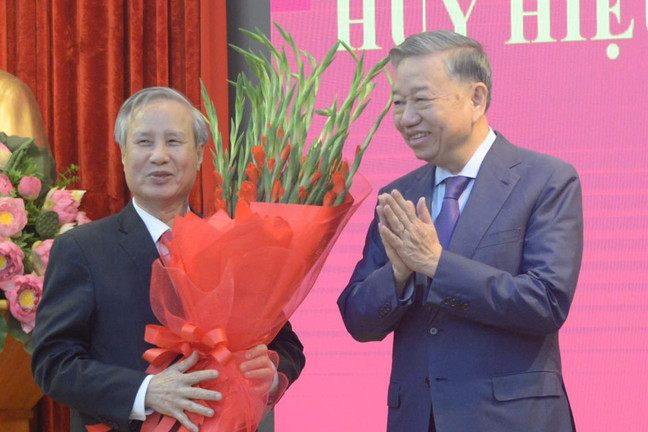 Tổng Bí thư Tô Lâm trao Huy hiệu 45 năm tuổi Đảng tặng ông Trần Quốc Vượng
