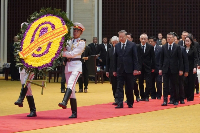 Tổng Bí thư Tô Lâm dẫn đầu Đoàn đại biểu cấp cao của Đảng, Nhà nước Việt Nam vào viếng ông Khamtay Siphandone.