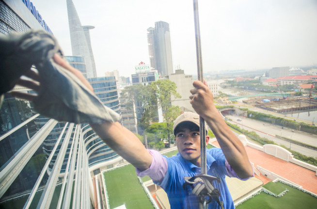 Những người làm nghề này phải leo lên các tòa nhà cao tầng cách xa mặt đất vài trăm mét chỉ để lau bụi ở cửa kính. Trên thế giới, những người làm nghề này được trả lương rất cao, nhưng ở Việt Nam lương cho công việc nguy hiểm này chỉ được trả từ 6 - 7 triệu/ tháng.