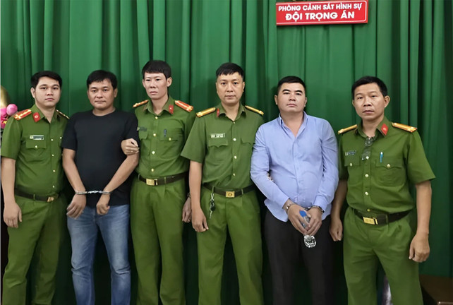Nam "cây thị" và Trung "mọi" tại cơ quan điều tra. (Ảnh Công an cung cấp)