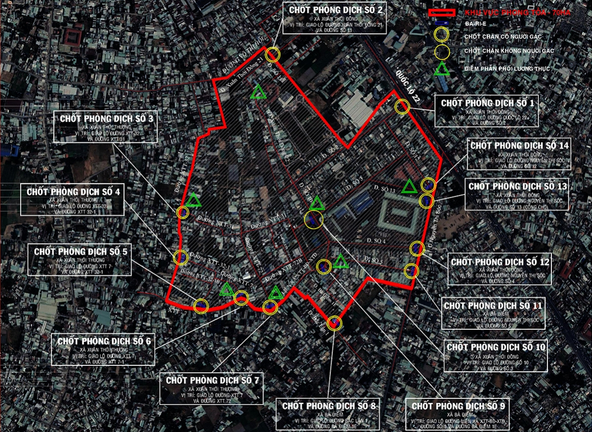 Khu vực phong toả và 12 chốt (Ảnh: UBND huyện Hóc Môn).