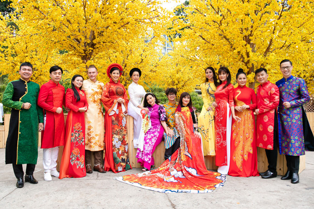 Dàn sao Việt cùng nhau diện áo dài, nô nức chụp ảnh tại lễ hội.
