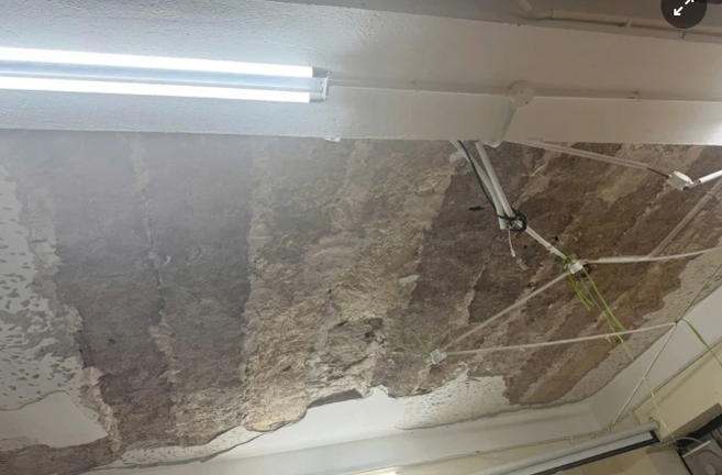 Hình ảnh trần lớp học bong tróc, gây nguy hiểm cho học sinh. (Ảnh: PHCC)