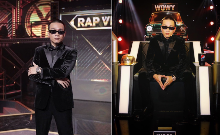 Tạo hình của Wowy trong tập 7 Rap Việt nhanh chóng gây ấn tượng nhờ nét lịch lãm xen lẫn cá tính. Chia sẻ với Zing, nam rapper cho biết: "Tôi có phối hợp với stylist nhưng Wowy vẫn là người quyết định cuối. Tôi mặc trang phục cả ngày quay nên hiểu rõ mình muốn và sẽ có hành động gì". (Ảnh: Rap Việt, FB Wowy Nguyễn)