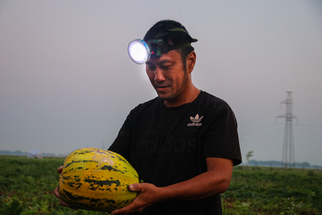 Tránh nắng nóng 42 độ C, nông dân Hà Tĩnh đội đèn thu hoạch dưa từ tờ mờ sáng