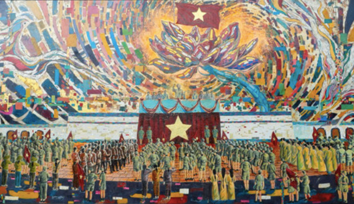 Tác phẩm đang trưng bày tại triển lãm Mùa xuân độc lập của Chu Nhật Quang ở Bảo tàng Hồ Chí Minh, cùng 16 bức sơn mài khác, nhân dịp kỷ niệm 80 năm Cách mạng Tháng Tám và Quốc khánh 2/9.