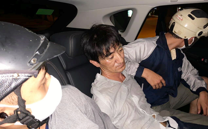 Lê Thanh Tùng bị khống chế trong ô tô. (Ảnh: Công an cung cấp)