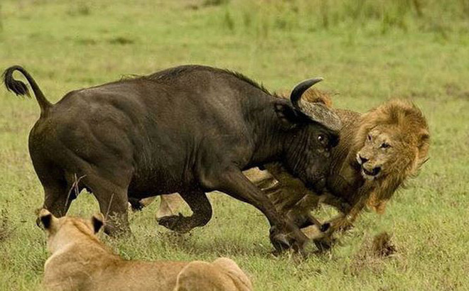 Tuy nhiên, trâu đực bị áp đảo về số lượng và tình thế dần đảo ngược. Dường như nhận ra nó không thể cùng lúc chiến đấu với cả đàn sư tử, trâu đực quay gót và bỏ chạy. Những con sư tử cái giận dữ đuổi theo. Con sư tử dẫn đầu thậm chí còn dùng vuốt cào vào hông trâu rừng khiến nó giật bắn càng cố chạy thục mạng. Một con chim đậu trên lưng trâu rừng vội vã bay đi để tránh mắc kẹt trong cuộc chiến giữa hai loài mãnh thú. Cảnh tượng được du khách tên Brent Schnupp ghi lại và chia sẻ trên kênh YouTube Maasai Sightings.