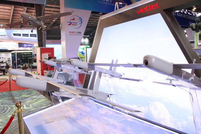Gian trưng bày giới thiệu các mẫu UAV tấn công do Tập đoàn Công nghiệp - Viễn thông Quân đội (Viettel) phát triển.