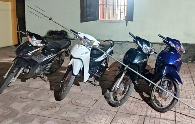 Tại hiện trường, cơ quan chức năng thu giữ tang vật gồm: 4 xe máy, 1 dao phóng lợn, 2 kiếm tự chế, 1 gậy ba khúc, 1 xốc ba răng...