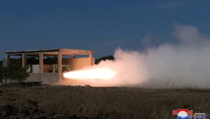 Hình ảnh thử nghiệm động cơ nhiên liệu rắn mới của Triều Tiên dành cho tên lửa đạn đạo tầm trung ngày 15/11/2023. (Ảnh: KCNA)