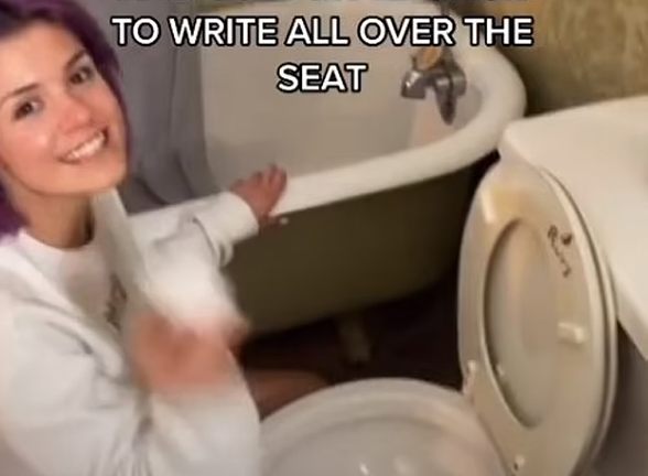 Luna kể câu chuyện của mình trên TikTok: “Tôi đã đuổi bạn trai quen trên Hinge chỉ trong vòng 15 phút sau khi gặp anh ấy vì không có thiện cảm. Anh ấy yêu cầu được sử dụng nhà vệ sinh trước khi rời đi và sau đó, đã dùng son môi của tôi để viết lên bồn cầu nhà tôi”. Clip cho thấy cô đang phải lau sạch từ “run” (chạy) trên bồn cầu trong nhà vệ sinh.