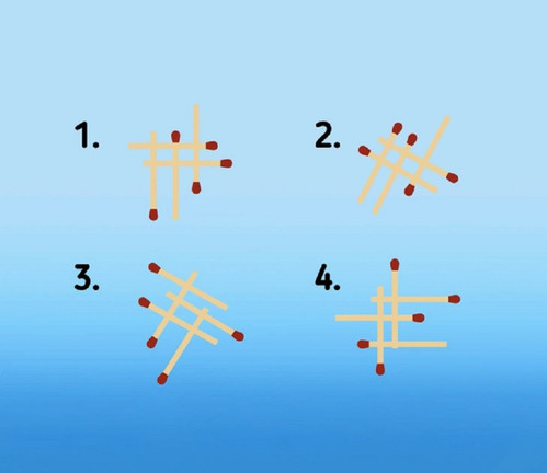 Đều mô tả 5 que diêm xếp với nhau nhưng một trong 4 hình dưới đây khác với những hình còn lại.