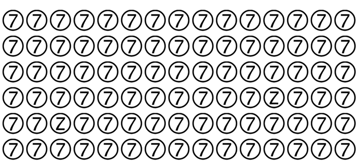 Trong bức ảnh này có rất nhiều số 7, nhưng vẫn tồn tại một vài chữ Z. Đố bạn trong 10 giây tìm ra chữ Z ở trong bức ảnh này và trong bức ảnh có bao nhiêu chữ Z.