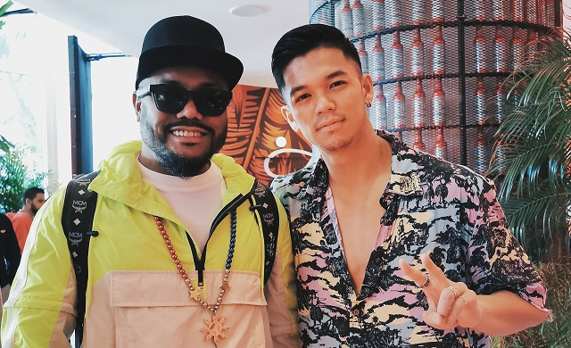 Trọng Hiếu và một thành viên khác của nhóm nhạc nổi tiếng The Black Eyed Peas - Apl.De.Ap.