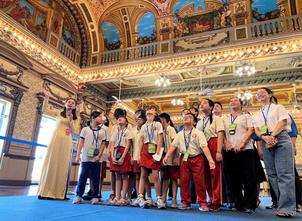 Đoàn khách tham quan trụ sở HĐND, UBND TP.HCM. (Ảnh: Quốc Thái)