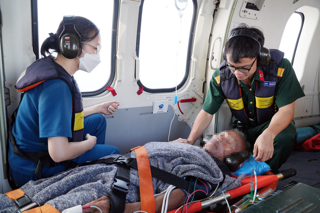 Trực thăng đưa ngư dân đột quỵ từ Trường Sa về đất liền điều trị