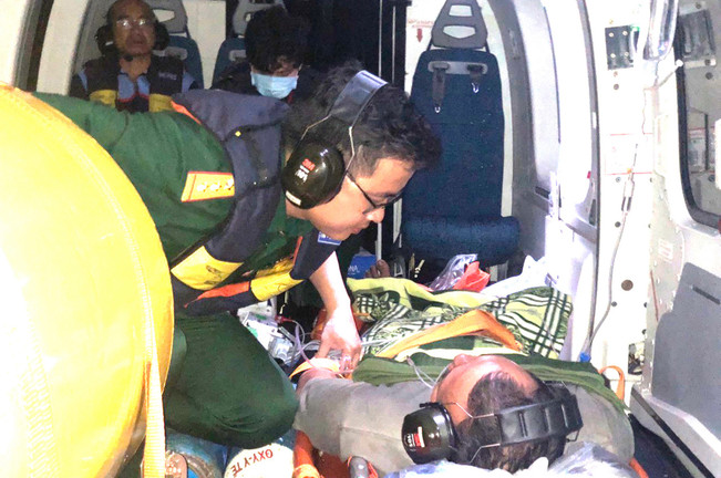 Thượng úy, bác sĩ Nguyễn Cảnh Chung cho biết, trong quá trình vận chuyển, ê-kíp đã phối hợp nhịp nhàng, khắc phục khó khăn trong điều kiện thời tiết xấu, mưa, dông để bảo đảm an toàn cao nhất cho bệnh nhân.