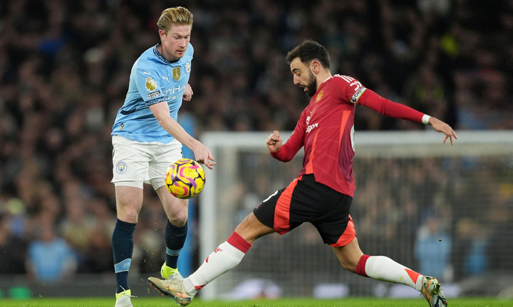 De Bruyne sút xa quá nhẹ và không gây ra khó khăn cho thủ môn của Man Utd. Đội chủ nhà tập trung quân số đông trước vòng cấm.