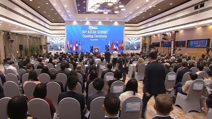 Sáng 26/6, Hội nghị Cấp cao ASEAN lần thứ 36 tổ chức theo hình thức trực tuyến khai mạc tại Trung tâm Hội nghị quốc tế Hà Nội.