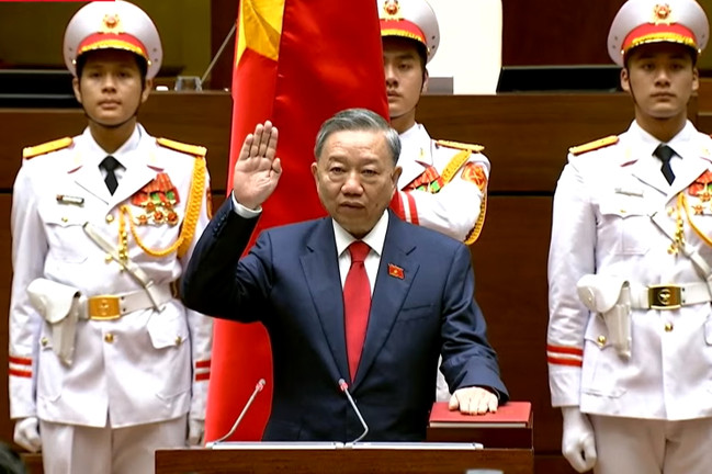 Sau khi Quốc hội thảo luận, biểu quyết thông qua, tân Chủ tịch nước tuyên thệ và phát biểu nhậm chức.