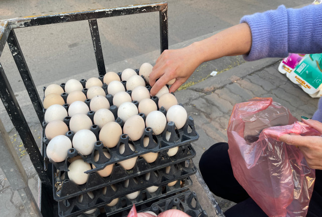Trứng gà giá rẻ bày bán la liệt trên nhiều tuyến phố ở Hà Nội.