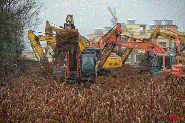 Công việc san lấp mặt bằng được bắt đầu trong đêm ngày 23/1. (Ảnh: Nhân dân nhật báo)