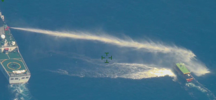 Tàu Trung Quốc dùng vòi rồng xua đuổi tàu của Philippines.